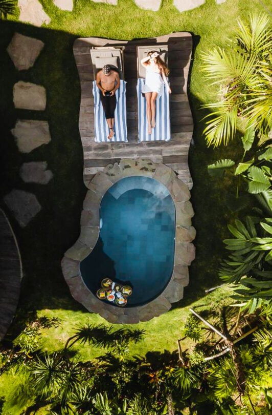 Bambu Indah, which translates to beautiful bamboo, combines the best of luxury stays with sustainable values and practices. Because of this, you’ll find incredible bamboo architecture, natural pools, a spa, and a restaurant that serves food from its very own garden. Enjoy the sounds of the Balinese jungle while you cool off in one of the resort’s lava stone pools, sipping on fresh mango juice. Bambu Indah is one of the most unique stays in Bali, Indonesia.